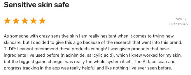 Our launch into dermatology takes on a massive problem. Industry data shows that nearly 50 million Americans suffer from acne, nearly 30 million from hyperpigmentation and more than 30 million from eczema, and many of them are unsatisfied with the current options on the market. Drugstore products lack efficacy and personalization, going to a dermatologist is a high friction and the standard of care for these conditions has declined.