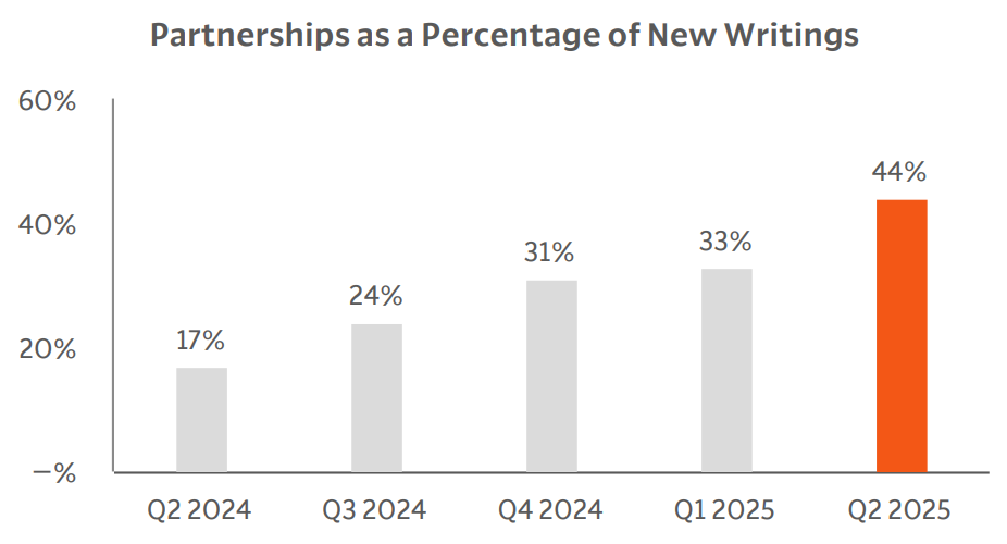 And once you have the best pricing algorithm in the industry, the second smartest thing to do is maximize its distribution, and that’s exactly what Root is doing. In addition to their DTC channel, which effectively powered the hypergrowth they reached in 2024, Root is relentlessly investing in partnerships and agents to build a distribution network as extensive as—or even more than—their competitors’. Here’s how partnerships as a percentage of new writings have increased over the last quarters, steadily claiming a larger share and turning distribution into a true competitive weapon.