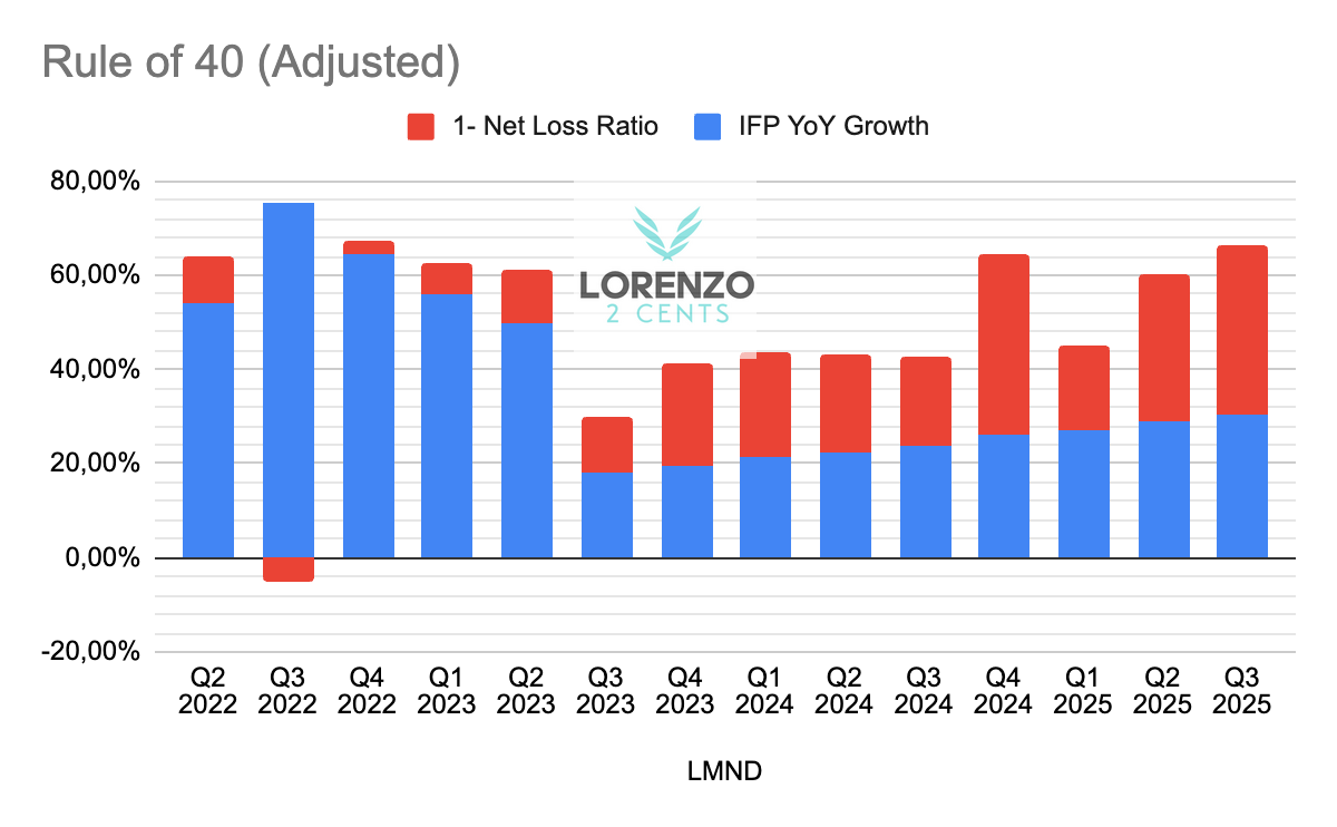 This is why I believe my proprietary adjusted Rule of 40 metric is really indicative of how the business is performing, at a rough level at least. Gross profit and its growth lie at the heart of an effort to optimize IFP growth and the loss ratio. And we can see from the trend that Lemonade has been able to navigate this trade-off beautifully so far.