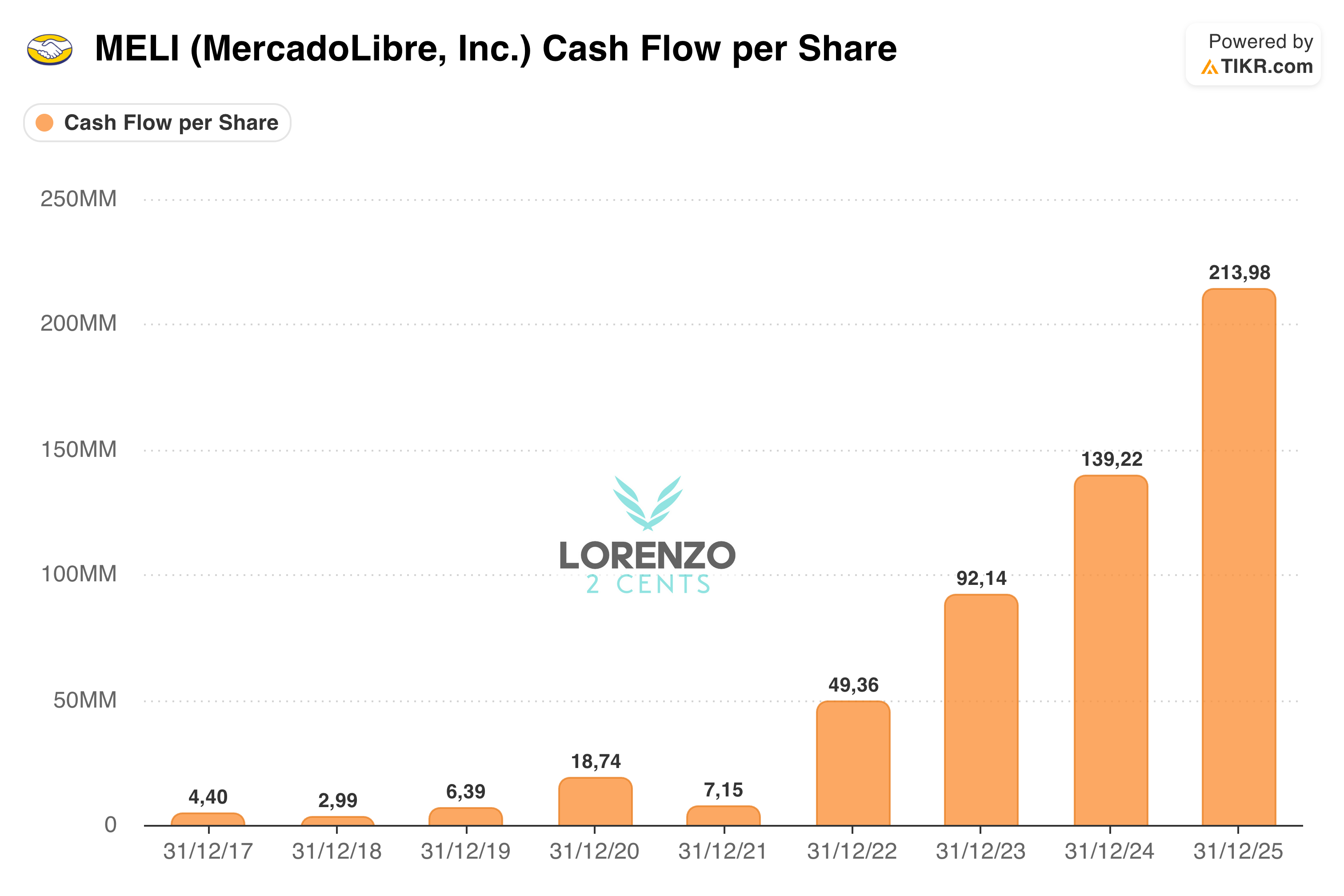 If MELI’s investments were reckless, you would see it in the per-share economics.